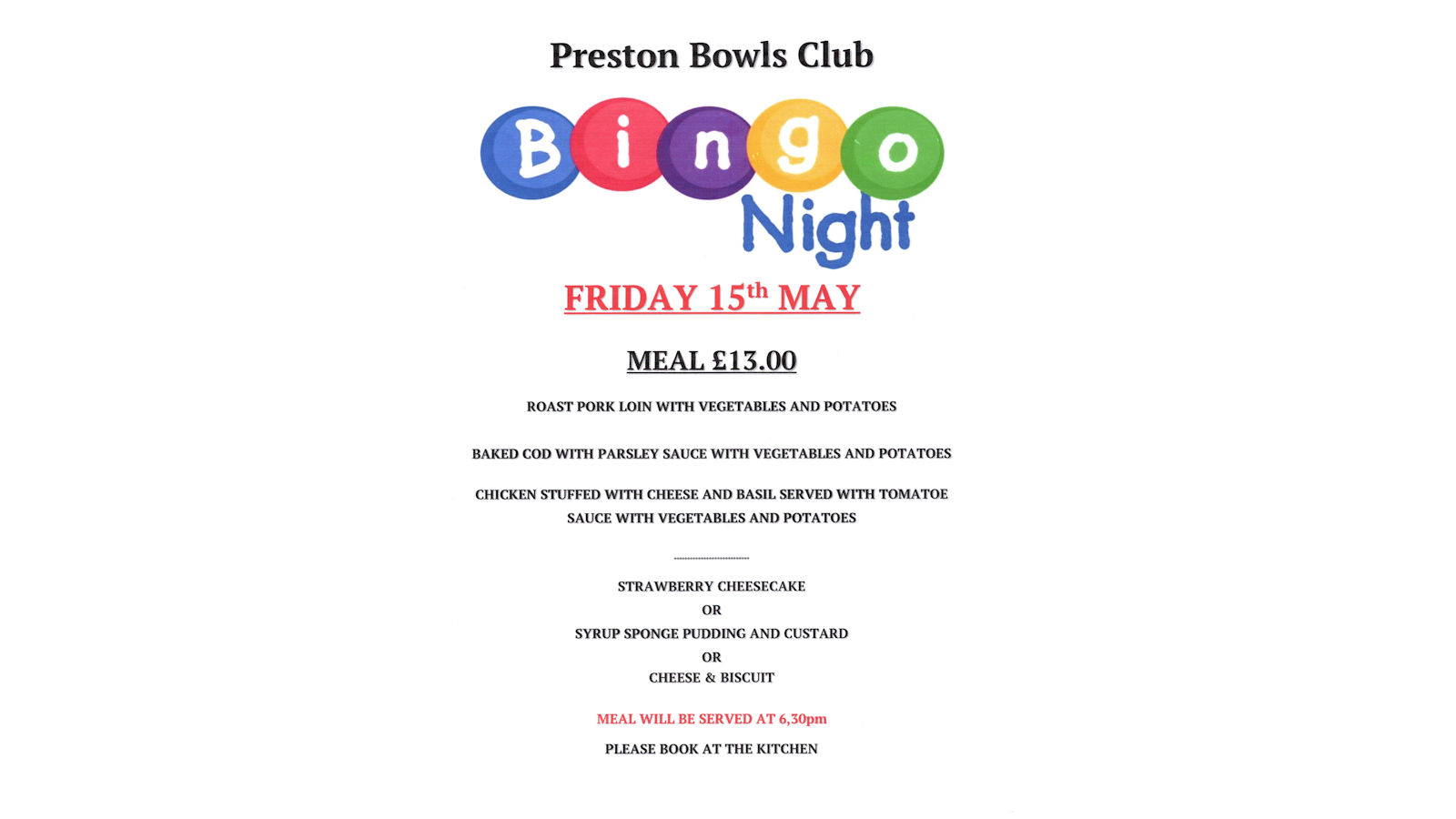 Friday 15th May Bingo Evening
